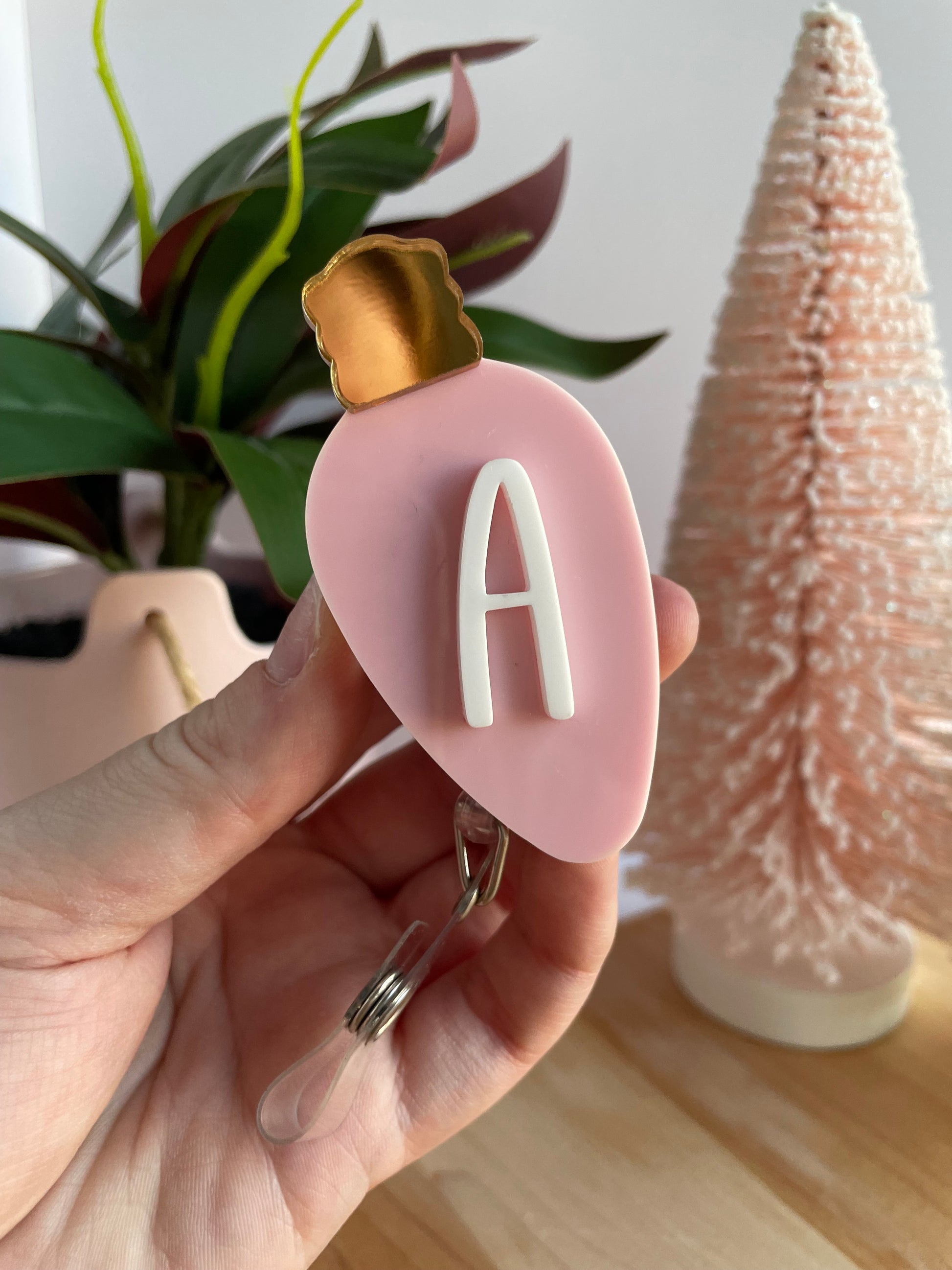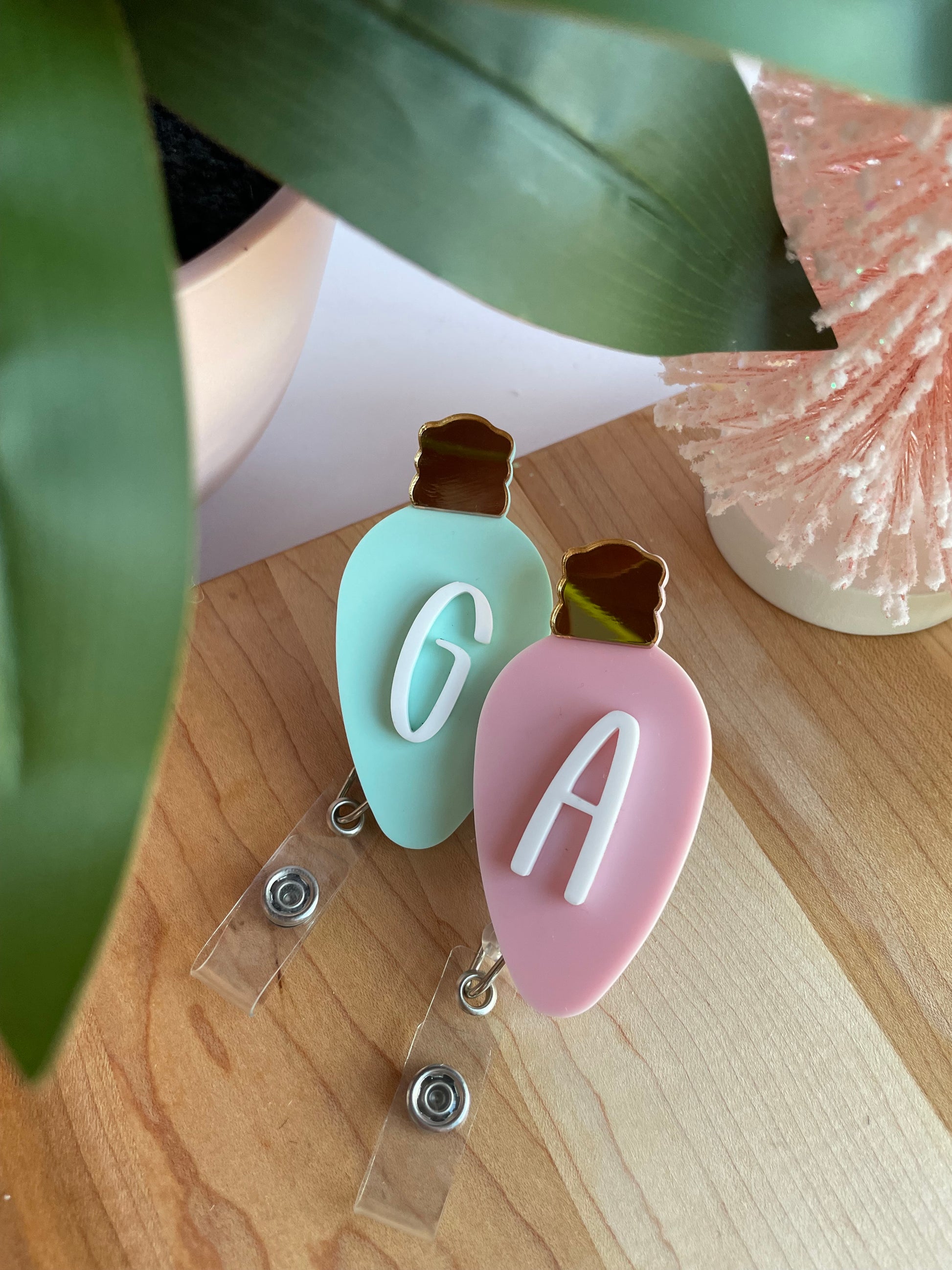 The cutest holiday badge reel for any nurse, health care worker, teacher, and more!! Indicate above which letter you want on the badge reel and if you want the bulb to be green or pink.