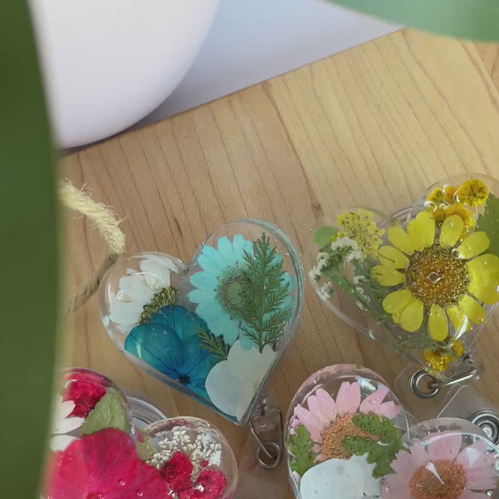 The cutest badge reel for any nurse, health care worker, teacher, and more!! Please note that the flowers will vary for each badge reel. These are handmade with real, dried flowers therefore each one can’t be made exactly the same.