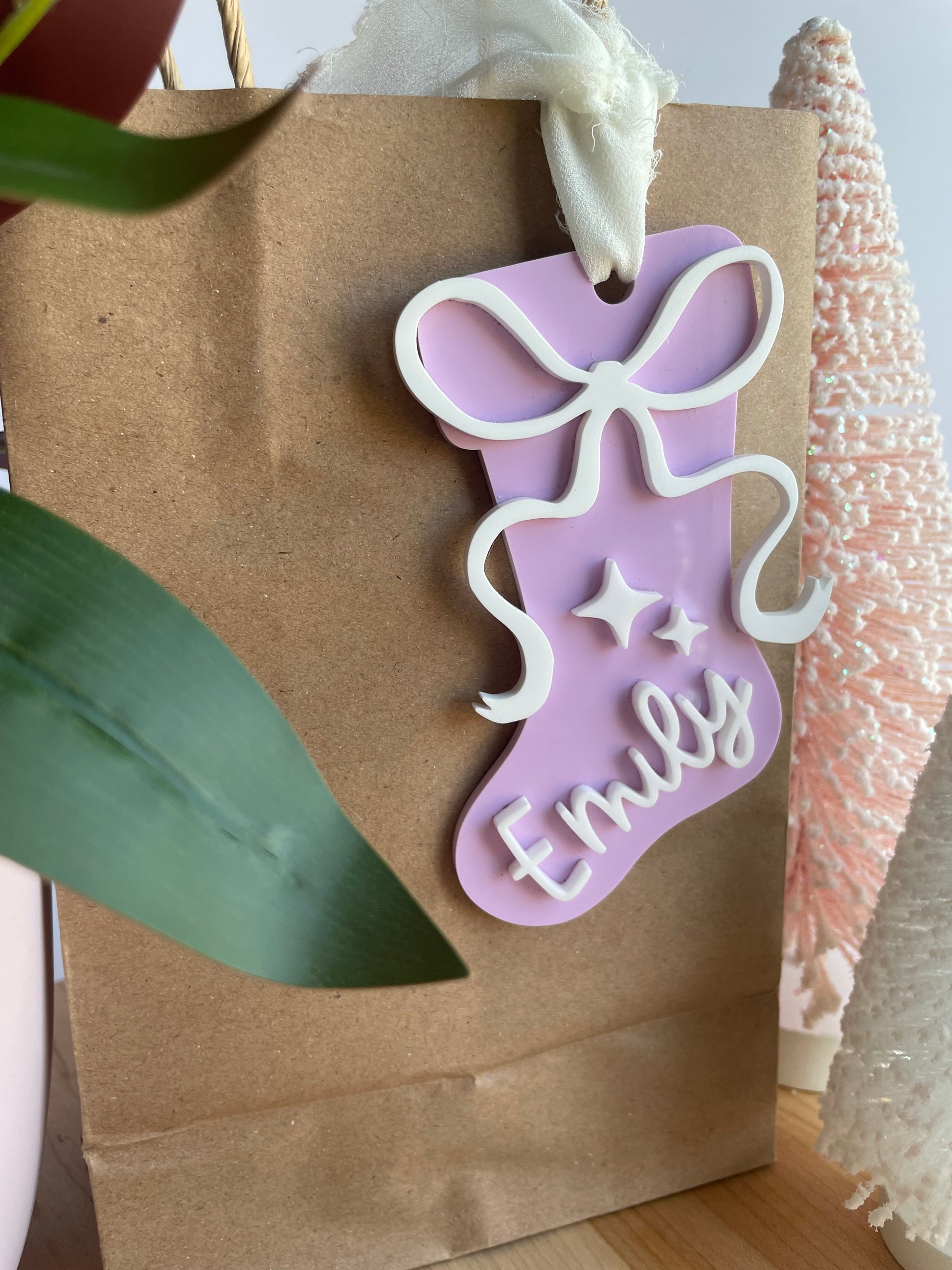 Holiday Stocking Custom Name Gift Tag with Chiffon Ribbon
