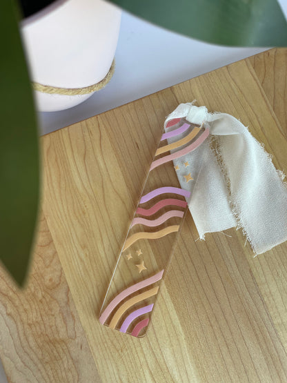 Pastel Swirly Waves Clear Acrylic Bookmark with Chiffon Ribbon