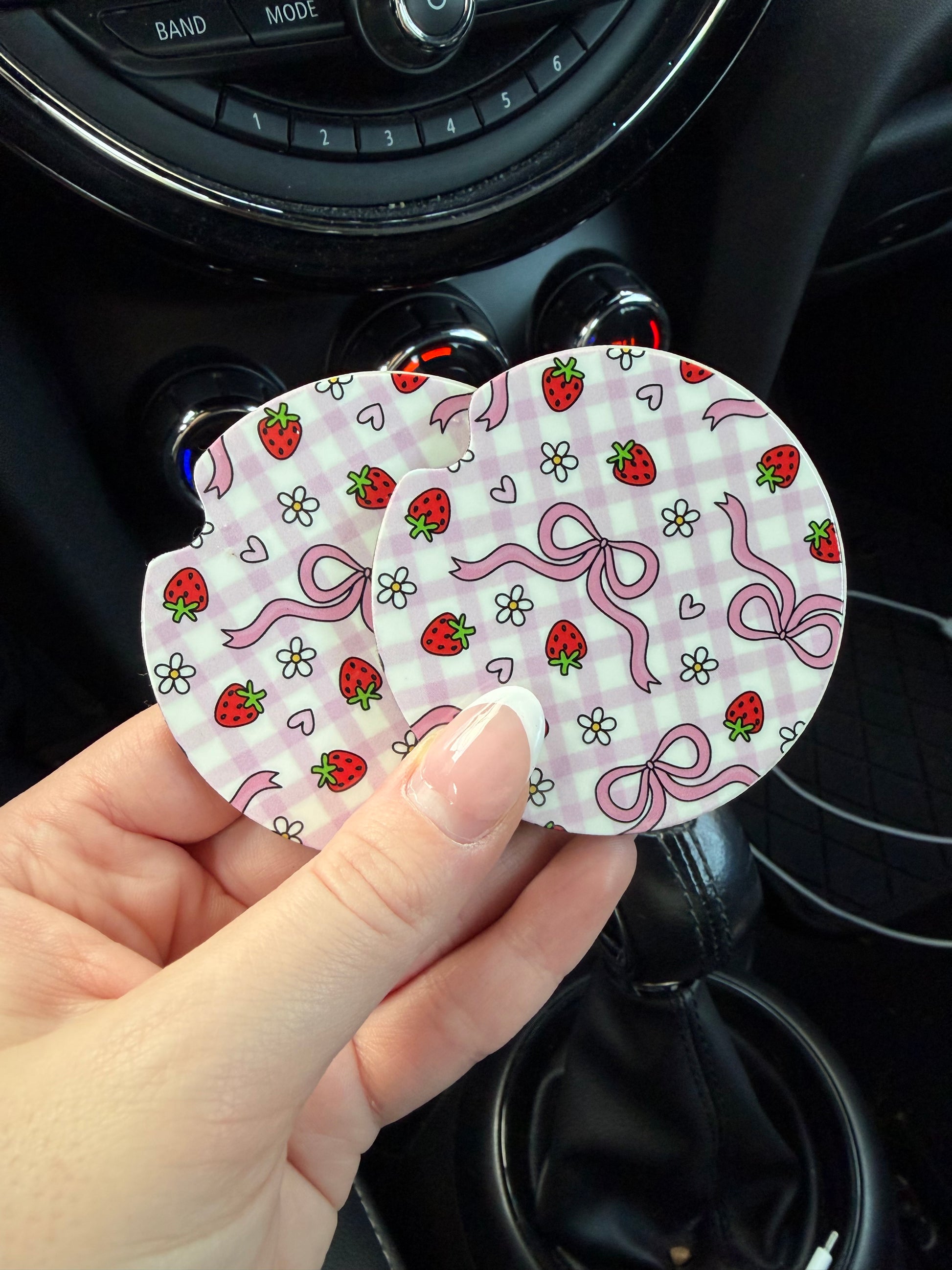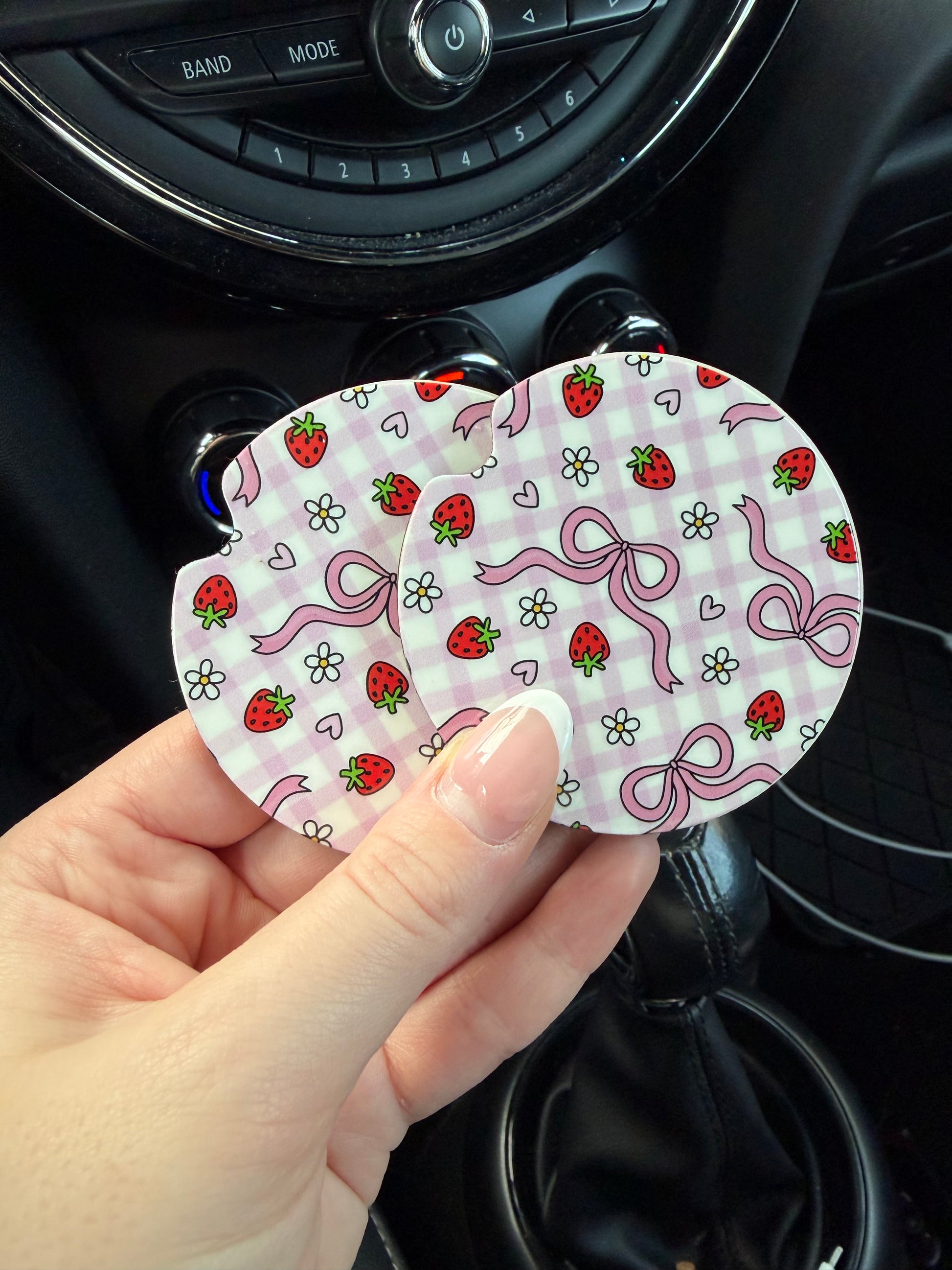 Strawberries, Bows, and Daisies Car Coasters